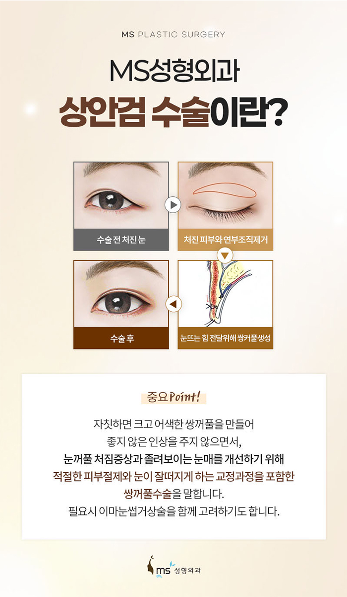 또 상안검수술에 대해 말해보자면 눈꺼풀의 처짐 증상과 졸려보이는 눈매를 개선하는데 도움을 주기 위해 적절하게 피부를 절제하고 눈이 잘 떠지게 하는 교정과정을 포함한 쌍꺼풀 수술을 말합니다. 그리고 필요한 경우 용인수원이마눈썹거상술을 함께 진행하게 되는데요.