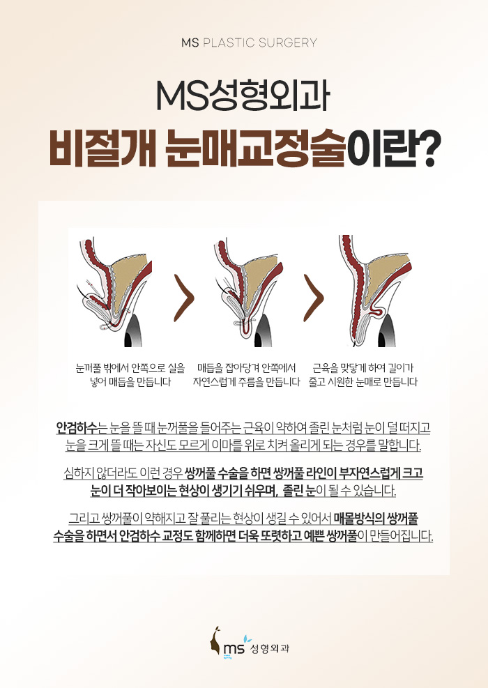 이 외에도 눈썹이 너무 처져 있거나 눈꺼풀이 많이 처져서 쌍거풀 라인이 드러나지 않는다면 인상 변화 문제가 가장 중요한데요. 이런 경우 엔도타인 이마거상술로 도움을 받아보실 수 있습니다. 그러니 눈재수술로 고민을 하고 있다면 쌍커플재수술잘하는병원인 분당 ms성형외과를 찾아주시기 바랍니다.