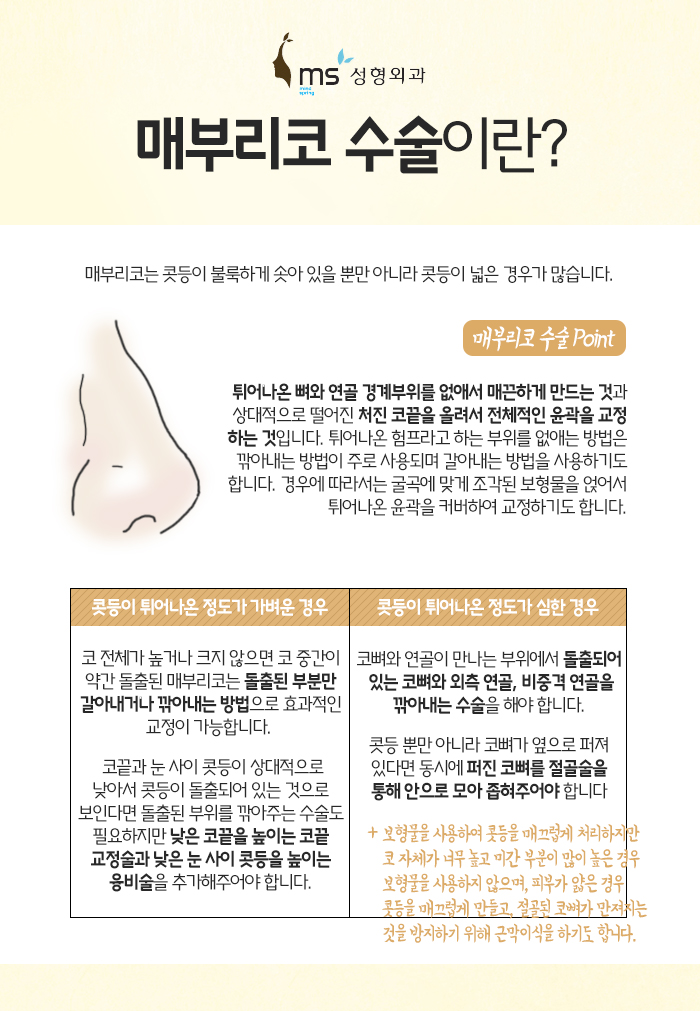 그리고 요즘 매부리코로 인해 분당 ms성형외과로 문의를 주시는 분들이 많은데요. 매부리코는 콧등이 불룩하게 솟아 있는 코를 말합니다. 또 콧등 또한 넓은 경우도 있는데요. 이렇게 매부리코가 있는 경우 튀어나온 뼈와 연골의 경계 부위를 없애서 매끈하게 만들어주어야 하고, 상대적으로 떨어진 처진 코끝을 올려서 전체적인 윤곽을 교정해주도록 해야 합니다.