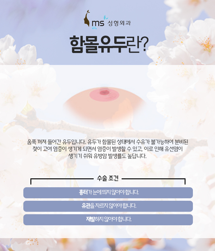 현재 유두가 함몰돼서 고민을 하고 계신 분들이 많습니다. 이렇게 유두가 함몰되면 외관상 신경이 쓰이는 것도 있지만 아무래도 수유를 하는데 지장이 생기게 되는데요. 또 염증이 생길 수 있기 때문에 동탄가슴성형 함몰유두 수술에 대해 알아보시는 분들이 많답니다. 그래서 오늘 분당 ms성형외과에서는 이러한 동탄가슴성형 함몰유두 수술에 대해 이야기하도록 하겠습니다.