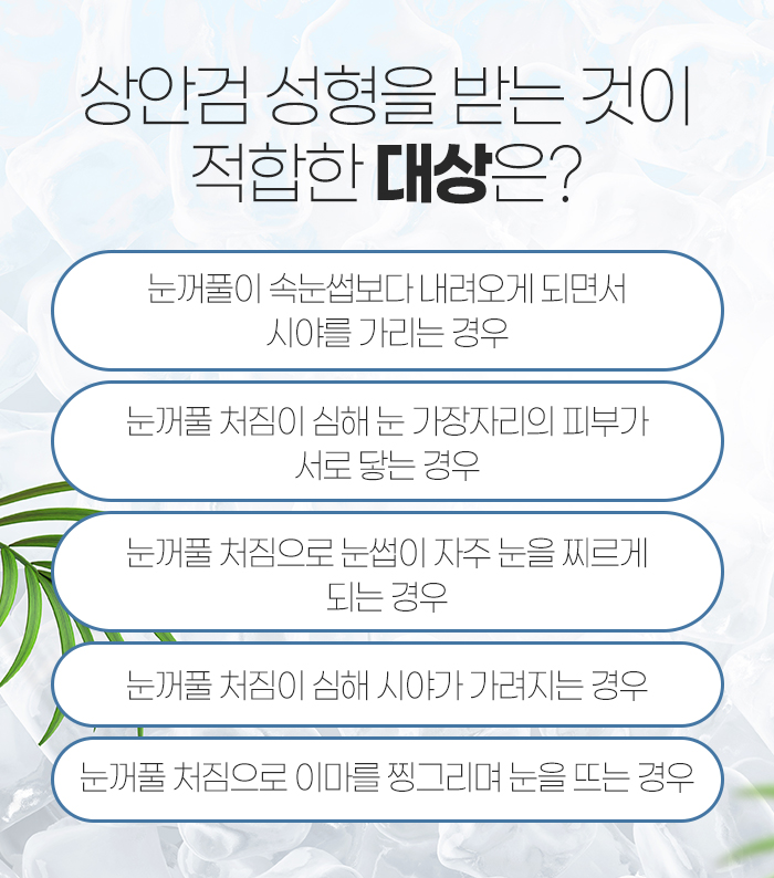 그리고 상안검 성형은 다음과 같은 경우에 받기에 적합한데요.
