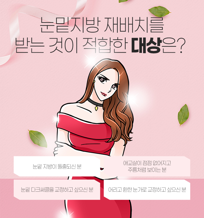 그래서 다음과 같은 경우에 받기에 적합한 눈밑지방 재배치인데요.
