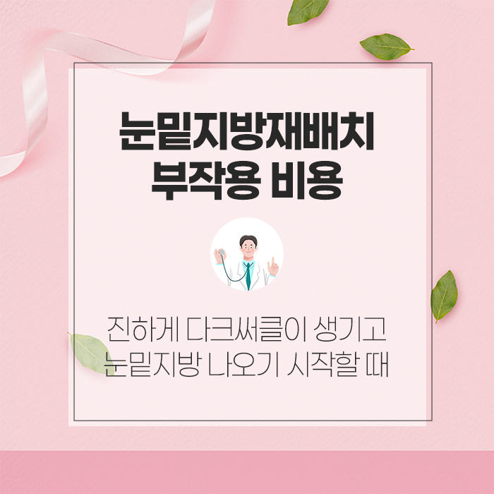 이때 눈밑지방이 불거지게 되면 안륜근에 혈류장애가 발생하게 되고, 검붉은 정맥 혈류가 많아지게 되면서 다크써클이 더욱 심해지게 된답니다. 이때 눈밑지방을 제거하고자 하시는 분들이 많은데요. 그럴 경우 눈밑지방재배치부작용 비용이 다시 들게 될 가능성이 높고 충분히 효과를 보기도 힘들답니다.