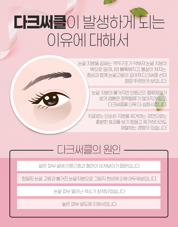 그리고 눈밑지방재배치부작용 비용에 대해 알아보는 이유는 바로 눈밑에 생긴 다크써클 때문입니다. 눈밑지방을 감싸고 있는 격막구조가 약해지게 되면서 눈밑지방이 밖으로 밀려나와 불룩해지고 볼 살이 처지는 증상과 함께 눈밑고랑이 깊어지게 되면서 다크써클 선이 점점 뚜렷하게 보이게 되는데요.