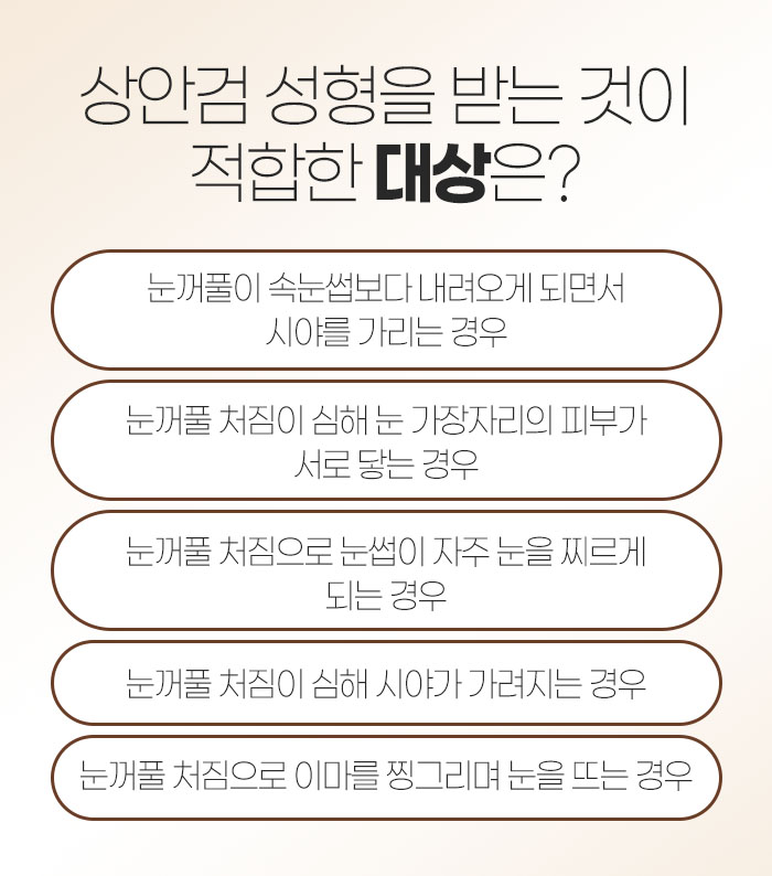 이러한 상안검수술은 다음과 같은 경우에 받기 적합하답니다.