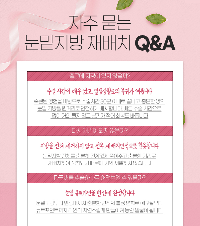 이런 경우 단순히 눈밑지방을 제거할 경우 충분히 나아지기 힘들며, 제거한다고 하더라도 다시 재발하는 경향이 있답니다. 그래서 분당눈밑지방재배치를 진행하게 되는 것인데요.