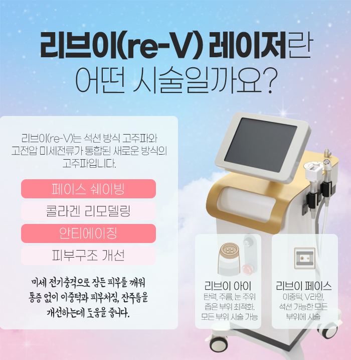 여기서 피부 처짐과 탄력 등을 개선하는데 도움을 줄 수 있는 장비로 분당인모드 리브이레이저를 주목하시는 분들이 많습니다. 고주파와 고전압 미세 전류가 통합된 데다 리브이 아이와 리브 페이스 두 개의 핸드피스로 다양한 리프팅 효과가 나타나는 것을 기대할 수 있기 때문입니다.