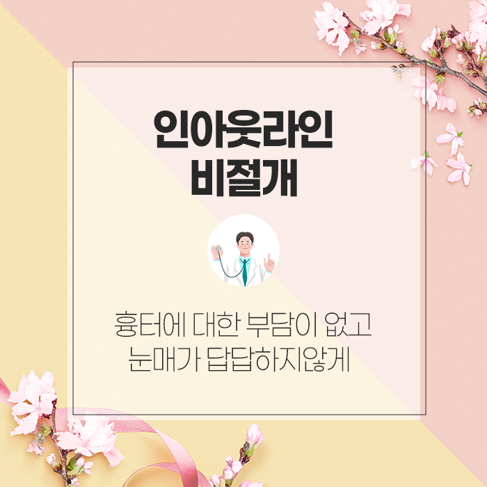 대부분 인아웃라인을 선호하지만 어떤 분은 오히려 인라인이 어울릴 수 있고, 또 어떤 분은 아웃라인이 어울릴 수 있습니다. 그래서 이에 대해서는 자세히 진단을 받아본 후 결정하시는 게 좋답니다.