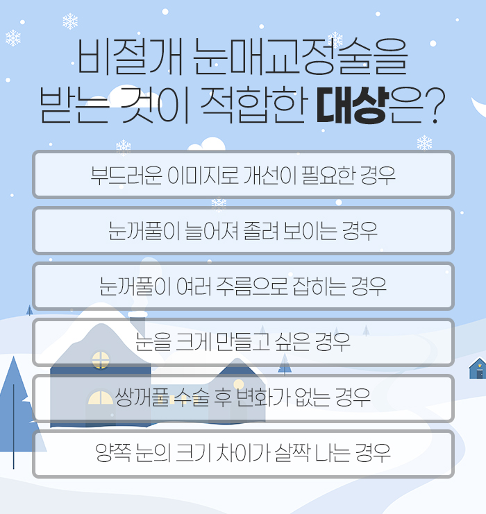 그렇기에 비절개눈매교정가격 후기에 대해 알아보시는 분들이 많은 것인데요. 이러한 비절개눈매교정은 특히 다음과 같은 경우에 받기 적합하답니다.