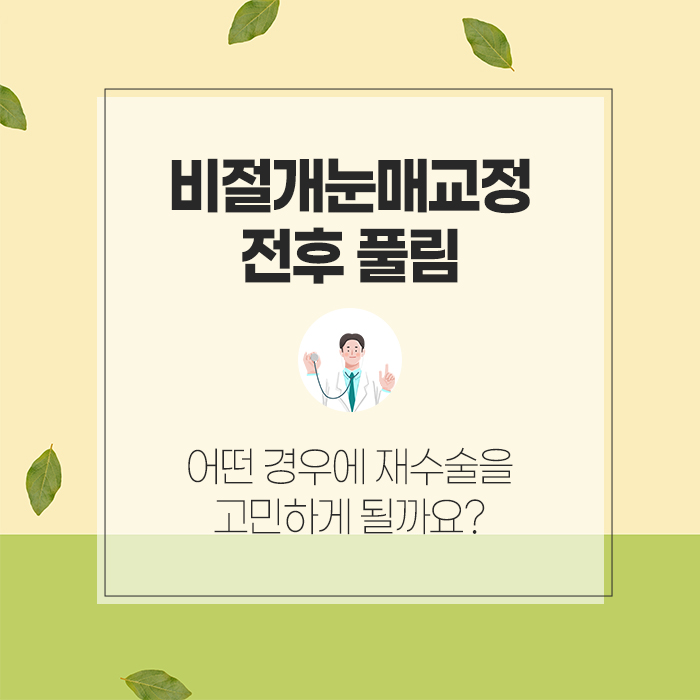 비절개눈매교정전후 풀림 문제로 재수술에 대해 알아보시는 분들이 많습니다. 이 외에도 다양한 문제로 눈수술을 받기 위해 찾아주보고 계신 분들이 많은데요. 그래서 오늘은 이에 대해 이야기하는 시간을 가져보려고 합니다.
