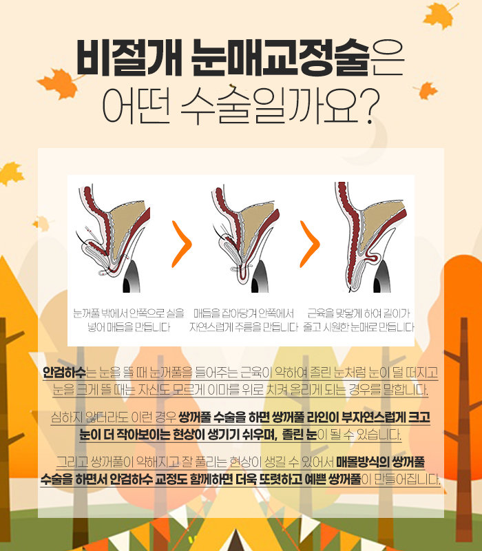 또 알고 보니 정작 필요한 것이 수원쌍수 자연유착 수술이 아니라 다른 눈 수술방법이 필요한 것이어서 곤혹스러워 하시는 경우도 적지 않게 찾아볼 수 있답니다. 그래서 오늘은 이에 대해 살펴보는 시간을 가져보려고 합니다.