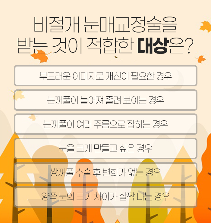 그렇기에 다음과 같은 경우에 해당될 때 수원쌍수 자연유착 수술을 받고자 하시는 분들이 많습니다.