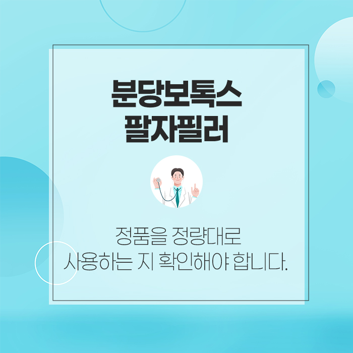 그리고 분당보톡스 팔자필러의 경우 숙련된 의료진에게 받아야 자연스럽지만 사실 그보다 더 중요한 것이 있답니다. 바로 정품인지, 또 정량대로 시술하고 있는지 확인해야 한다는 것인데요. 보톡스의 경우 정품을 시술해도 정량대로 시술하지 않는 경우가 있는데, 이런 경우 효과가 떨어지게 됩니다.