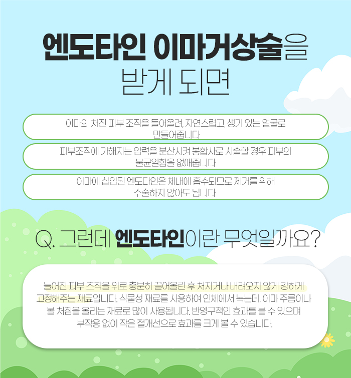 그리고 성남상안검수술과 같이 진행하는 경우가 많은 이마눈썹거상술은 엔도타인을 이용하여 진행하고 있는데요. 이마 주름과 처진 눈썹을 개선하는데 도움을 주기 위해 두피 내 1cm 정도로 작게 절개하여 이마 주름과 눈썹, 눈꺼풀의 처짐을 한번에 개선하는데 도움을 주는 방법이랍니다.
