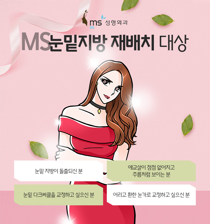 그래서 분당눈밑지방재배치 잘하는곳 분당 ms성형외과에서 수술을 받으시는 경우가 많은데요. 참고로 이러한 눈밑지방 재배치는 다음과 같은 경우에 받기에 적합합니다.