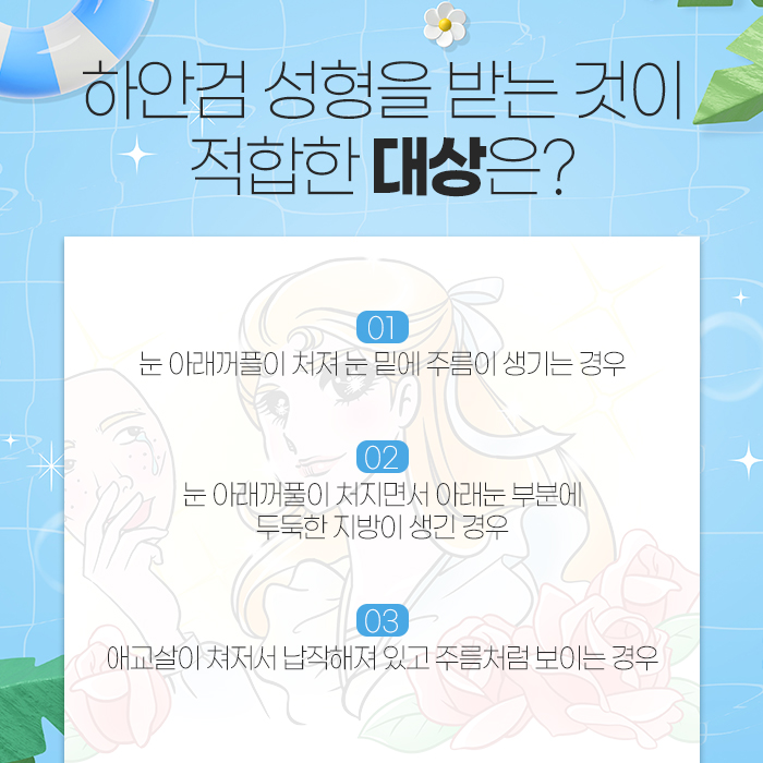 그렇기에 다음과 같은 경우에 해당될 때 하안검수술흉터 잘하는곳을 찾으시는 경우가 많습니다.