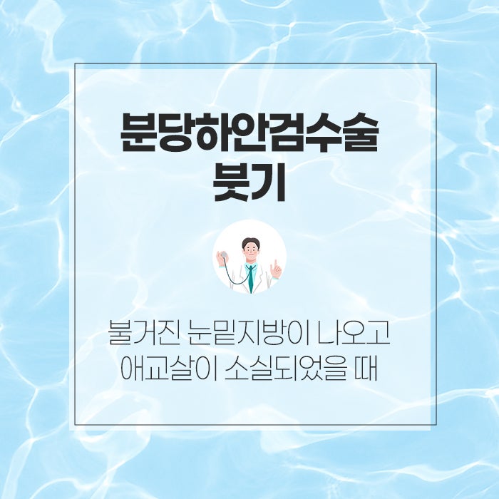 눈밑지방으로 하안검수술을 받고 싶은데 분당하안검수술 붓기가 오래 갈 것 같아서 걱정하시는 분들이 많습니다. 그래서 오늘은 이러한 하안검수술과 분당하안검수술 붓기 등에 대해 이야기하는 시간을 가져보려고 하는데요.
