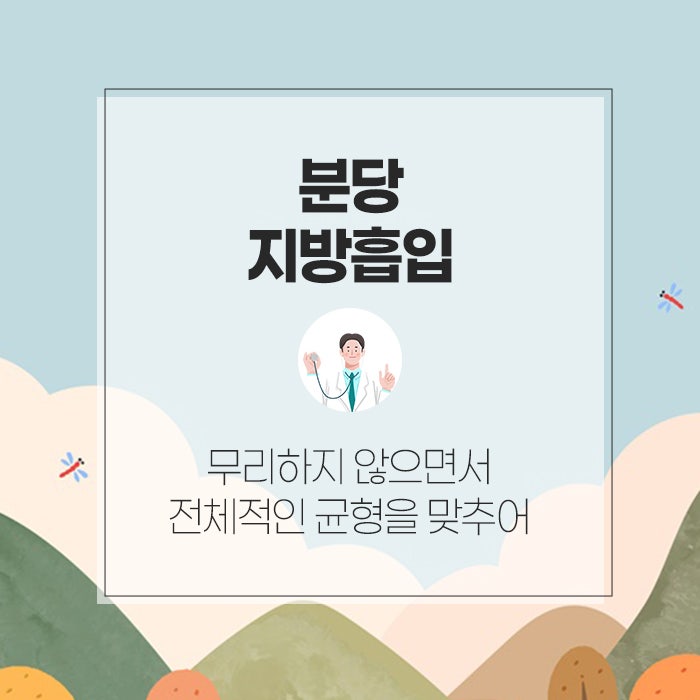 뿐만 아니라 축적되어 지방이 도드라져 보이는 부위 주변에 있는 피부도 지방이 어느 정도 축적된 상태인데요. 그래서 도드라져 보이는 부분만 분당지방흡입을 하게 될 경우 어색해보입니다. 그래서 전체적인 균형을 생각하며 흡입을 하는 것이 중요하답니다.